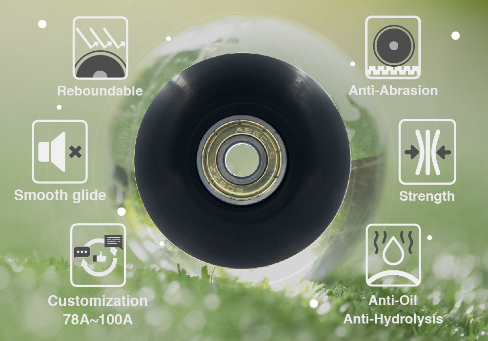 PU cast wheels can be engineered to achieve 360-degree rotation, enhancing maneuverability and steering flexibility. This design allows for smoother, more effortless operation and movement. Common applications include freestyle inline skates and adjustable roller skate wheels, delivering stable and smooth rolling performance.