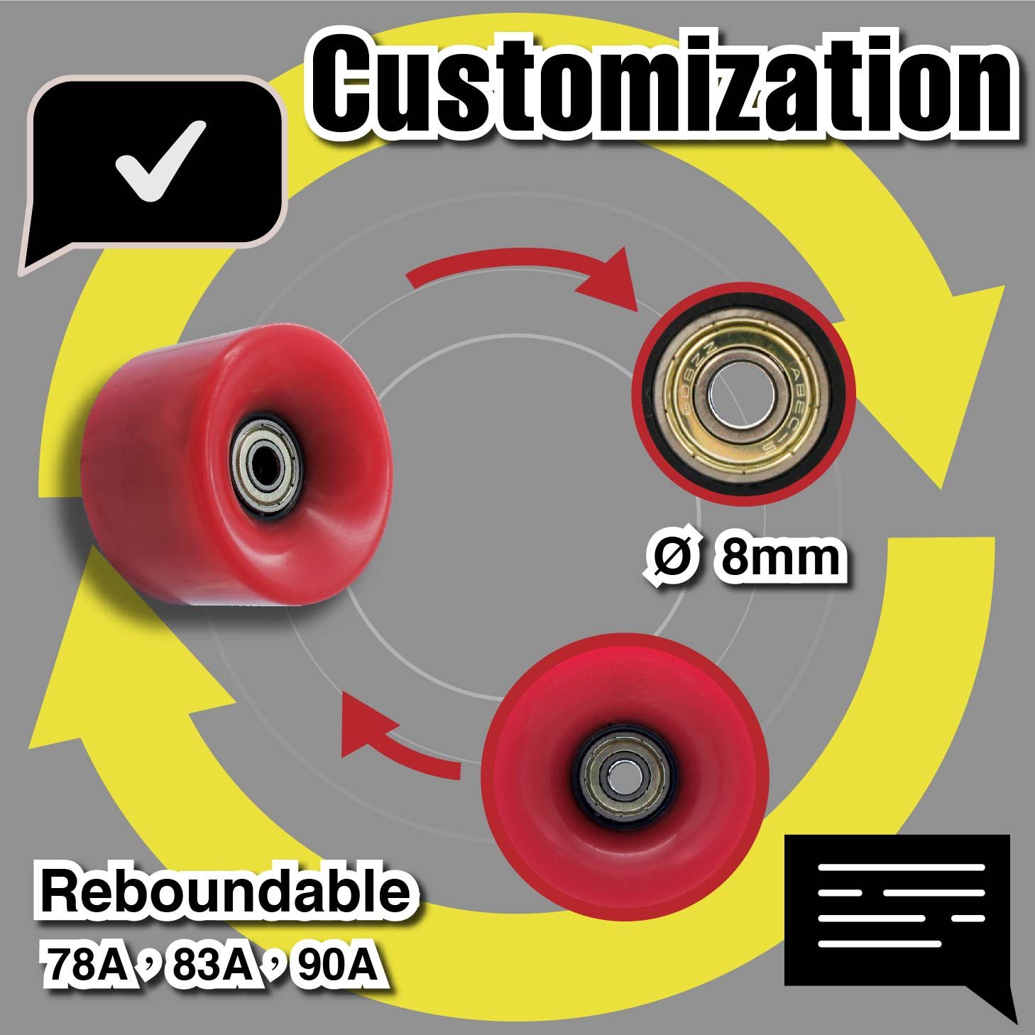 PU cast wheels can be engineered to achieve 360-degree rotation, enhancing maneuverability and steering flexibility. This design allows for smoother, more effortless operation and movement. Common applications include freestyle inline skates and adjustable roller skate wheels, delivering stable and smooth rolling performance.