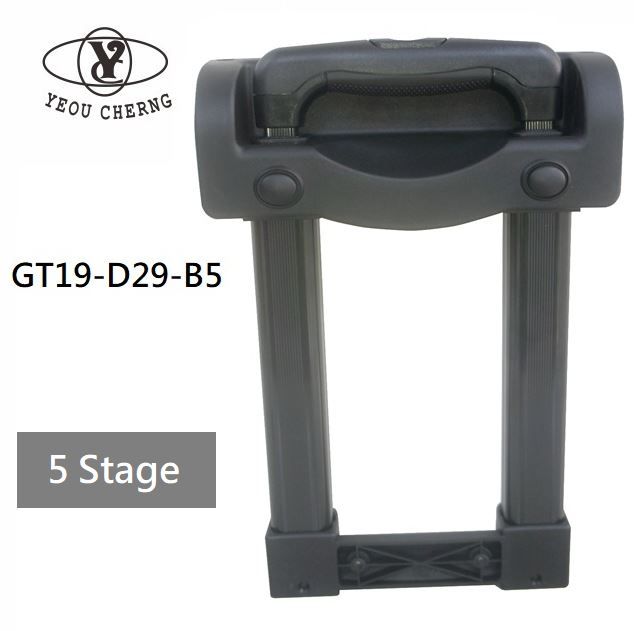 | Type | ◆ Durable and rugged construction, Sturdy lightweight design. 1. Telescoping with a button push 2. Internal mounting style luggage handle 3. 5 sectional telescopic function 4. D29 radius panel, rivet/ screw mounting type 5. B5 bottom mounting bar ( optional 90 degree L shape L19) 6. Suitable for luggage and pilot case from 11"~13". |