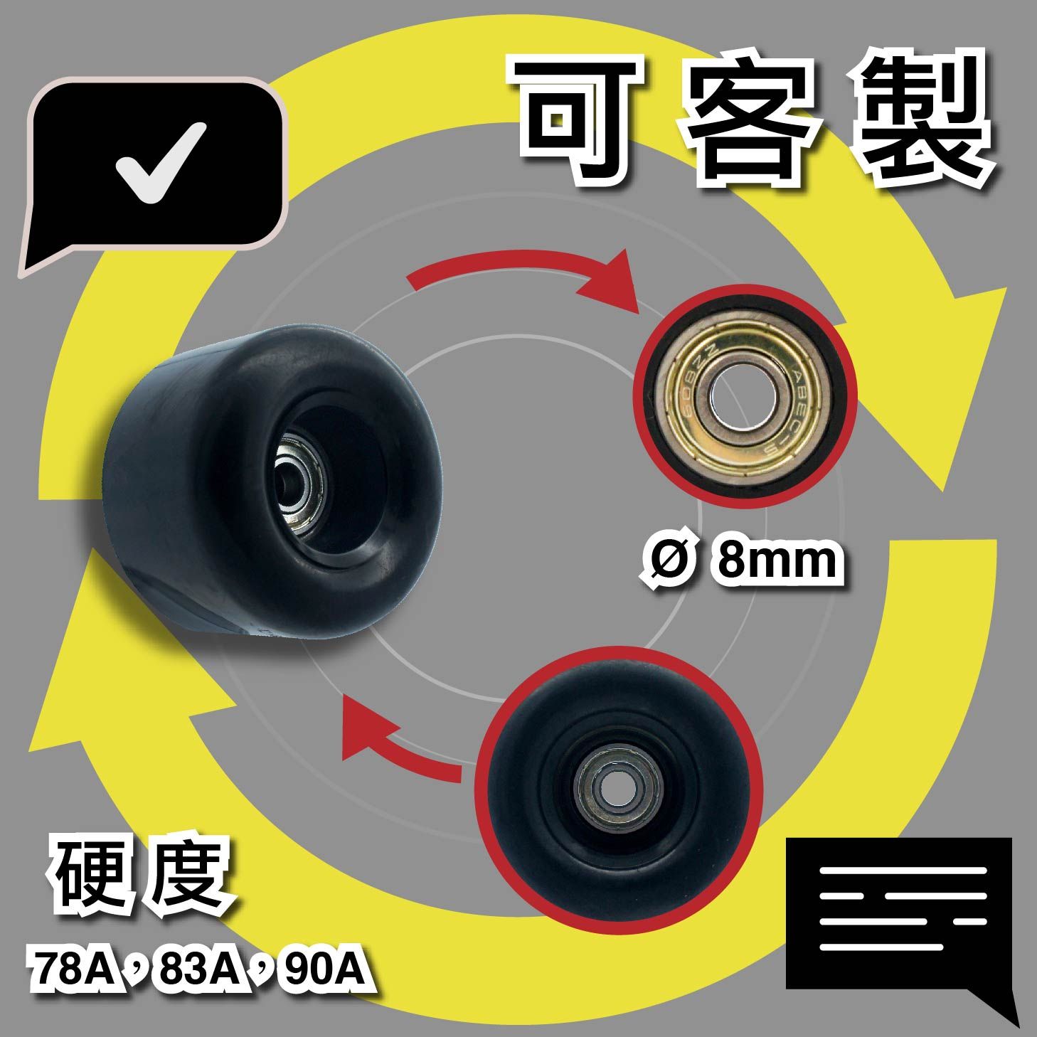 | 產品應用 | 滑板、滑板車、運動器材、包包、手提箱、購物車、旅行袋 |