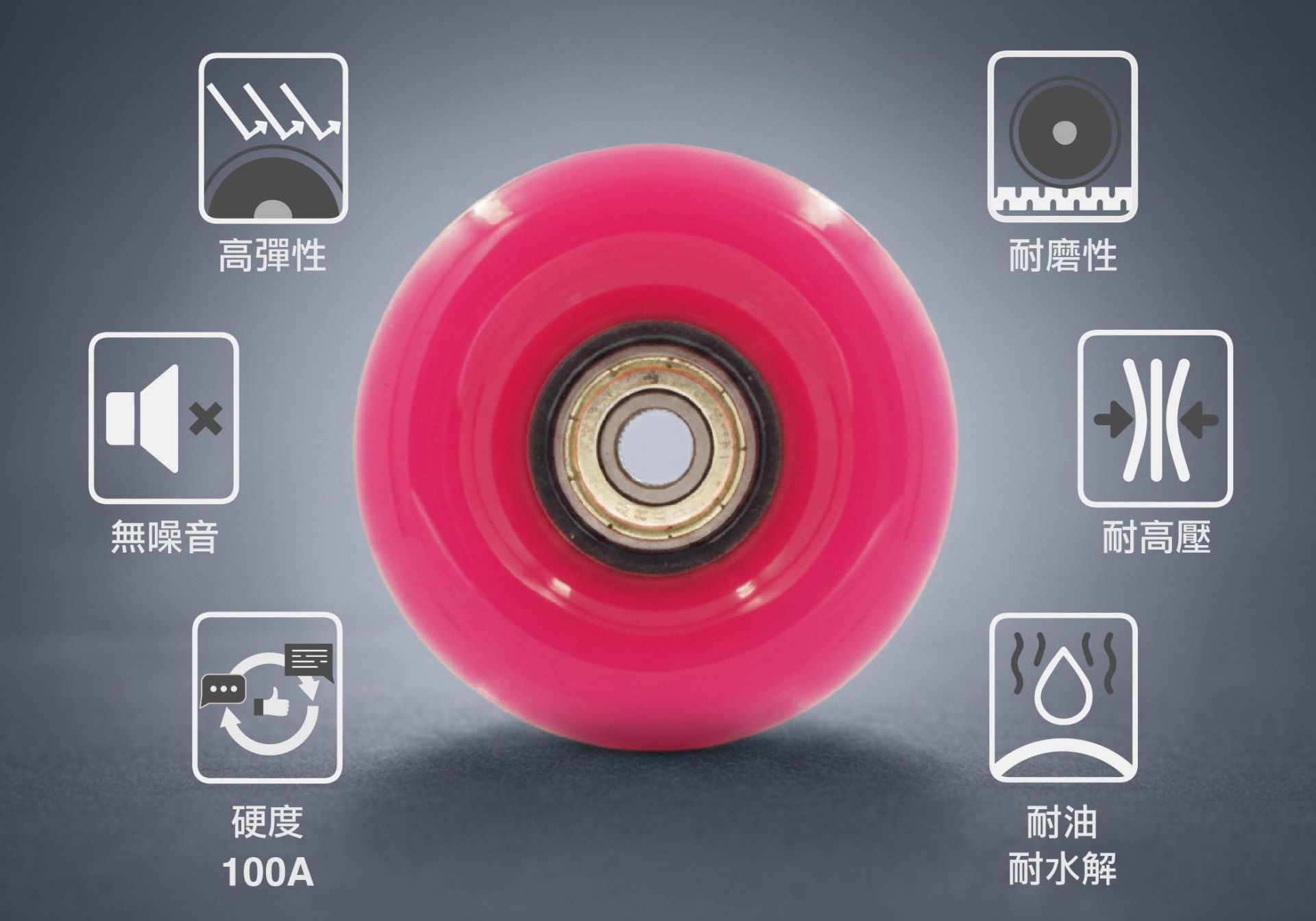 3. 能減少輪子與地面摩擦時產生的噪音,以提供安靜的滾動,不會造成噪音干擾。