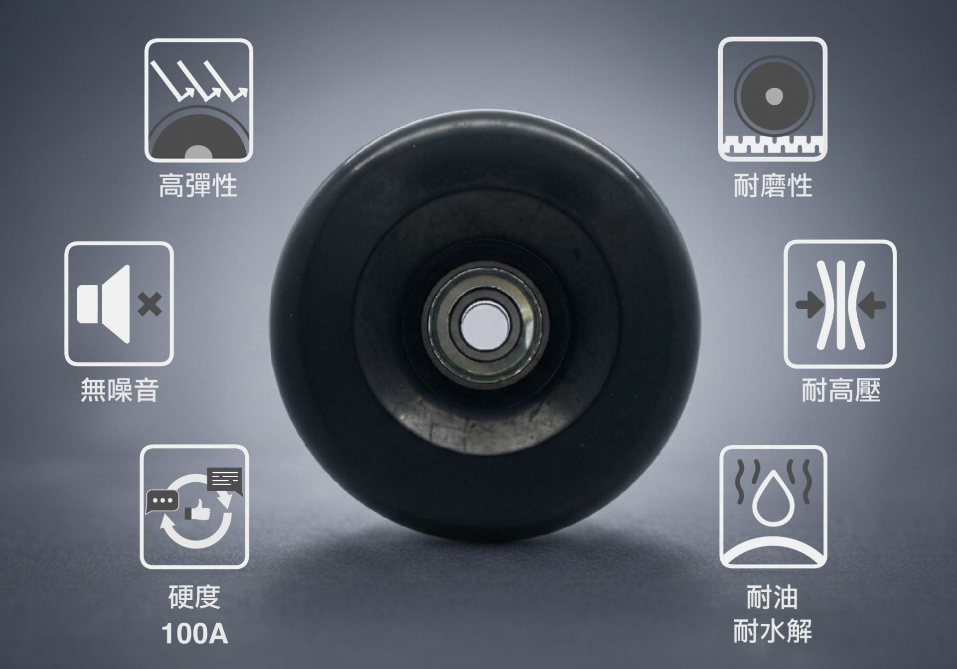 3. 能減少輪子與地面摩擦時產生的噪音,以提供安靜的滾動,不會造成噪音干擾。