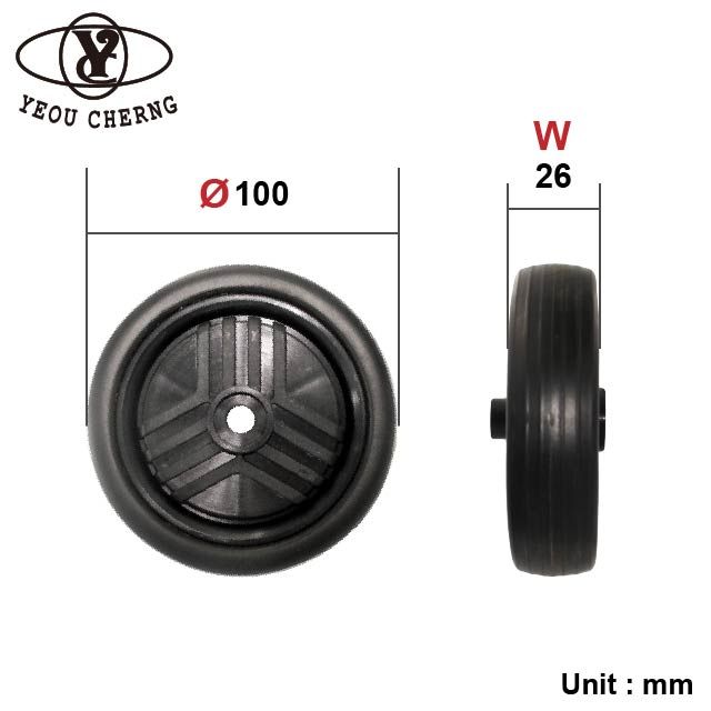 | 產品說明 | 1. 行李箱輪子,EVA發泡輪,旅行箱輪,拉桿箱輪子。 2. 直徑100mm,輕量輪子。 3. 適合用於工具車, 推車, 腳輪組裝使用。 4. 另有多種尺寸PU,EVA輪子可供選擇。 |