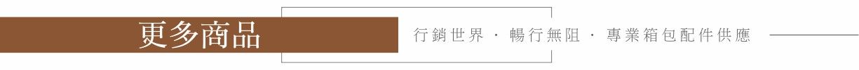 | 產品應用 | 站腳高度搭配各式腳輪, 適用於各類行李箱,手提箱,旅行袋,手提袋, 運動用拖輪袋, 樂器包, 軟包袋及硬箱等各類型包款及拉桿袋 |